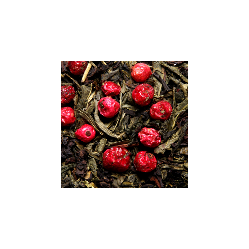 Mélange de thé vert sencha et thé Oolong semi fermenté aromatisé fruits rouges et vanille et parsemé de groseilles entières.